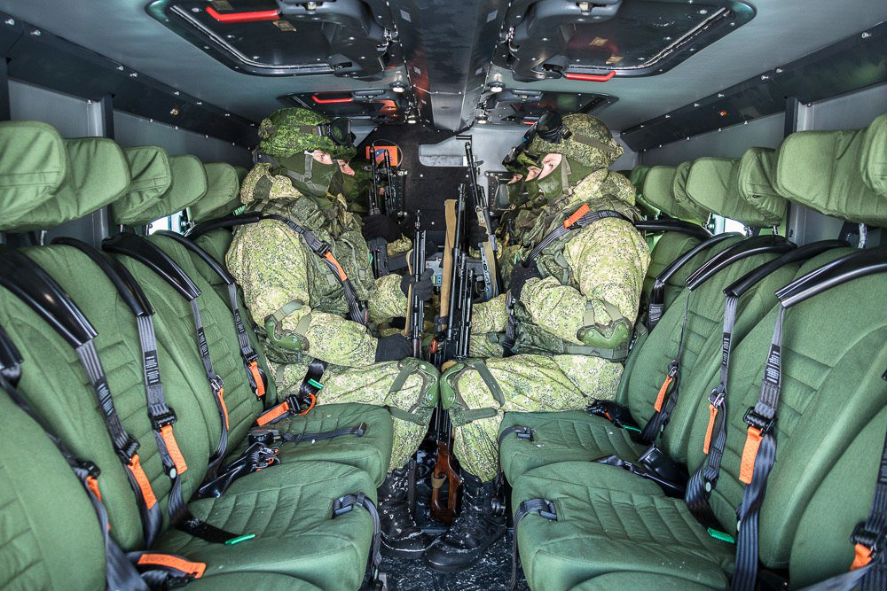 El cuerpo del vehículo y su carga están fuertemente resguardados mediante un blindaje cerámico integral, mientras que la peculiar geometría del chasis, los asientos con protección antiminas y las nuevas marcas de blindaje lo protegen de las explosiones por mina o fougasse.